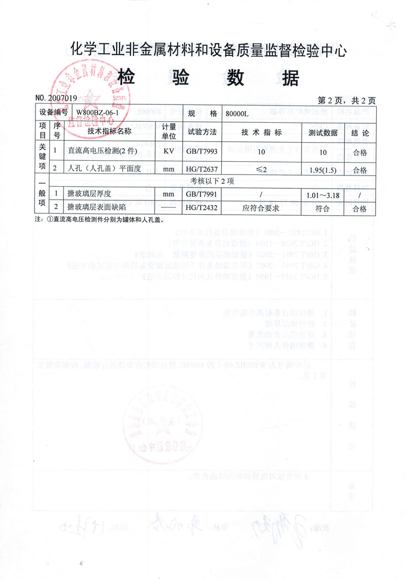 • 搪玻璃設(shè)備合格檢驗(yàn)報告